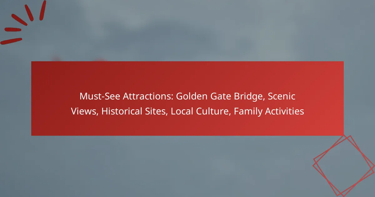 San Francisco is a vibrant city brimming with must-see attractions that reflect its rich culture, stunning scenery, and historical significance. Visitors can marvel at the iconic Golden Gate Bridge, enjoy breathtaking views from various vantage points, and immerse themselves in local culture through family-friendly activities and historical sites. Each experience offers a unique glimpse into the charm and diversity that define this remarkable city.